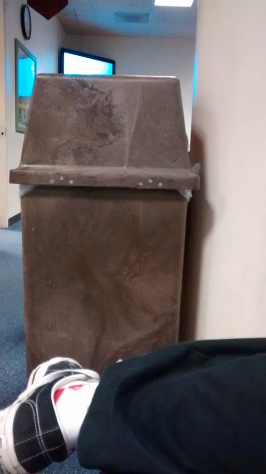 I was able to take this photo this morning in the juror assembly room, though.  So you can see how my day started:  I got the seat right behind the trash can.
