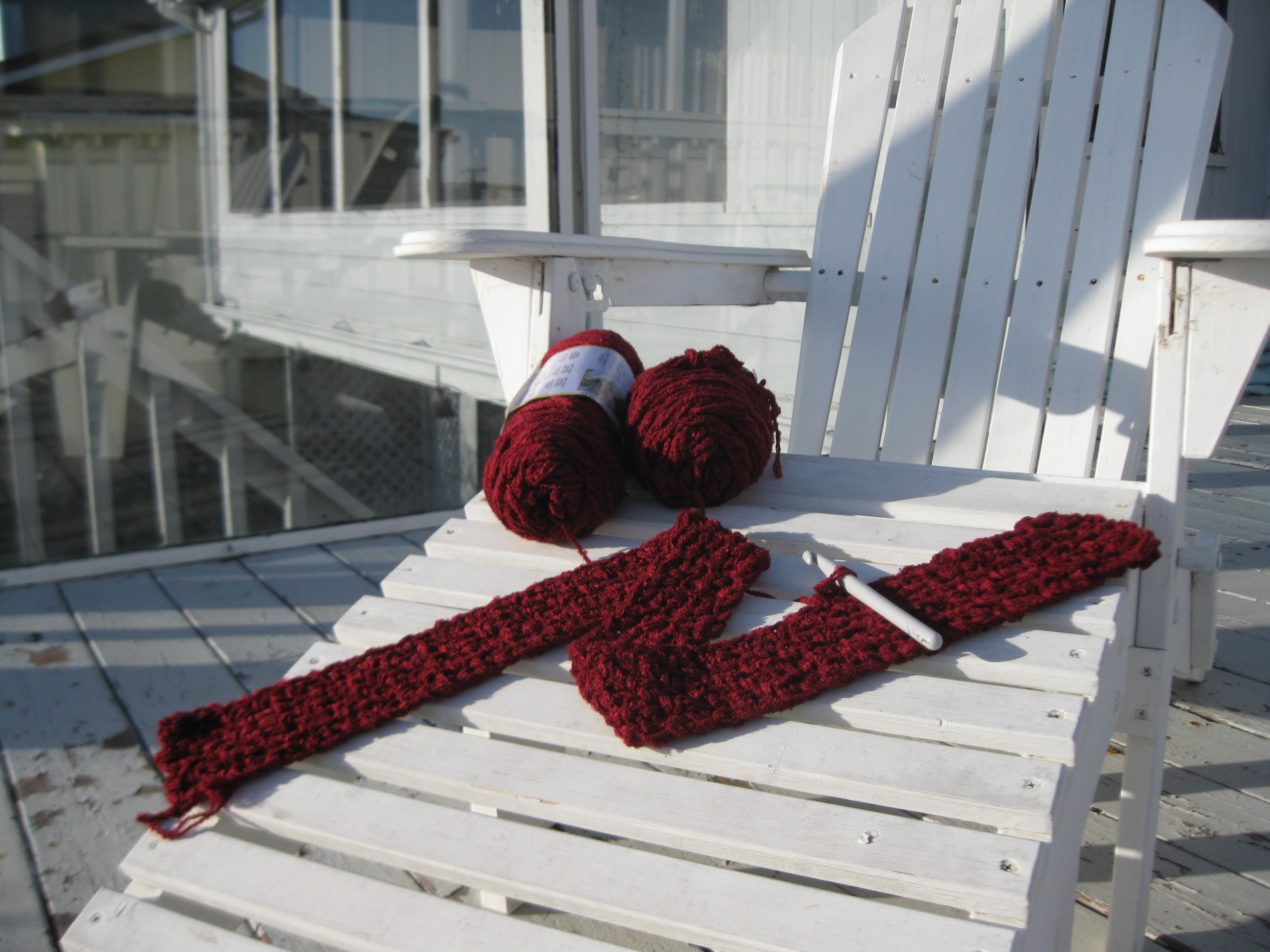 Several inches along into the project, I realized I was going to run out of yarn pretty soon, and it would be way too short for a scarf.  But never mind.  It would do as a table runner.