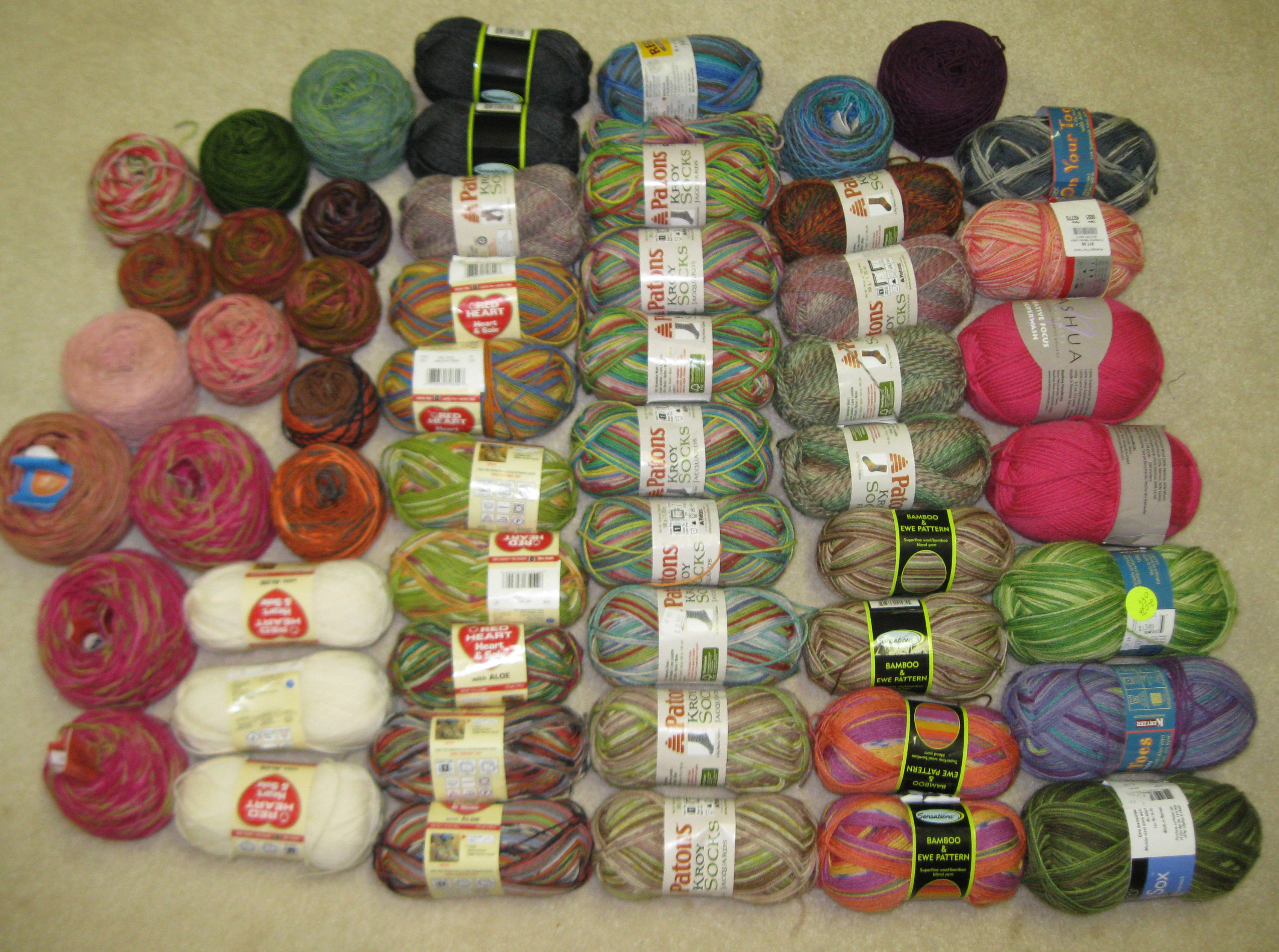 I have sock yarn, from the fairly inexpensive stuff you can purchase at chain craft stores, to the really expensive hand-dyed extrafine merino wool that they sell at independent shops with “Fine Yarns” added to the store’s name.