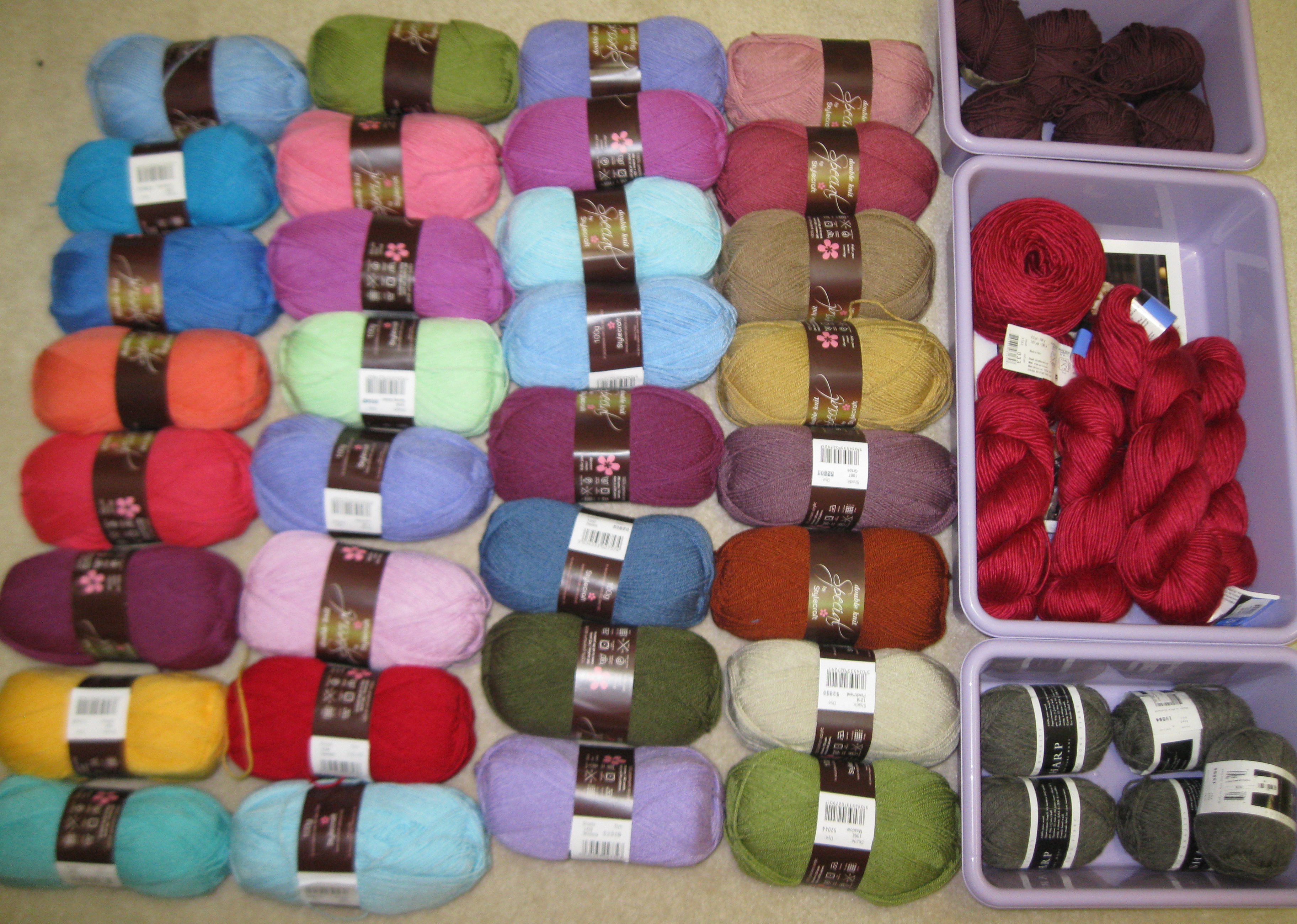 They come from Romania or Japan, Italy or Germany, Wales or other places in the United Kingdom.  The labels and brands vary from the small and obscure to the names you know, like Noro, Cascade, Crystal Palace, Classic Elite, Karabella, Debbie Bliss, Berroco.