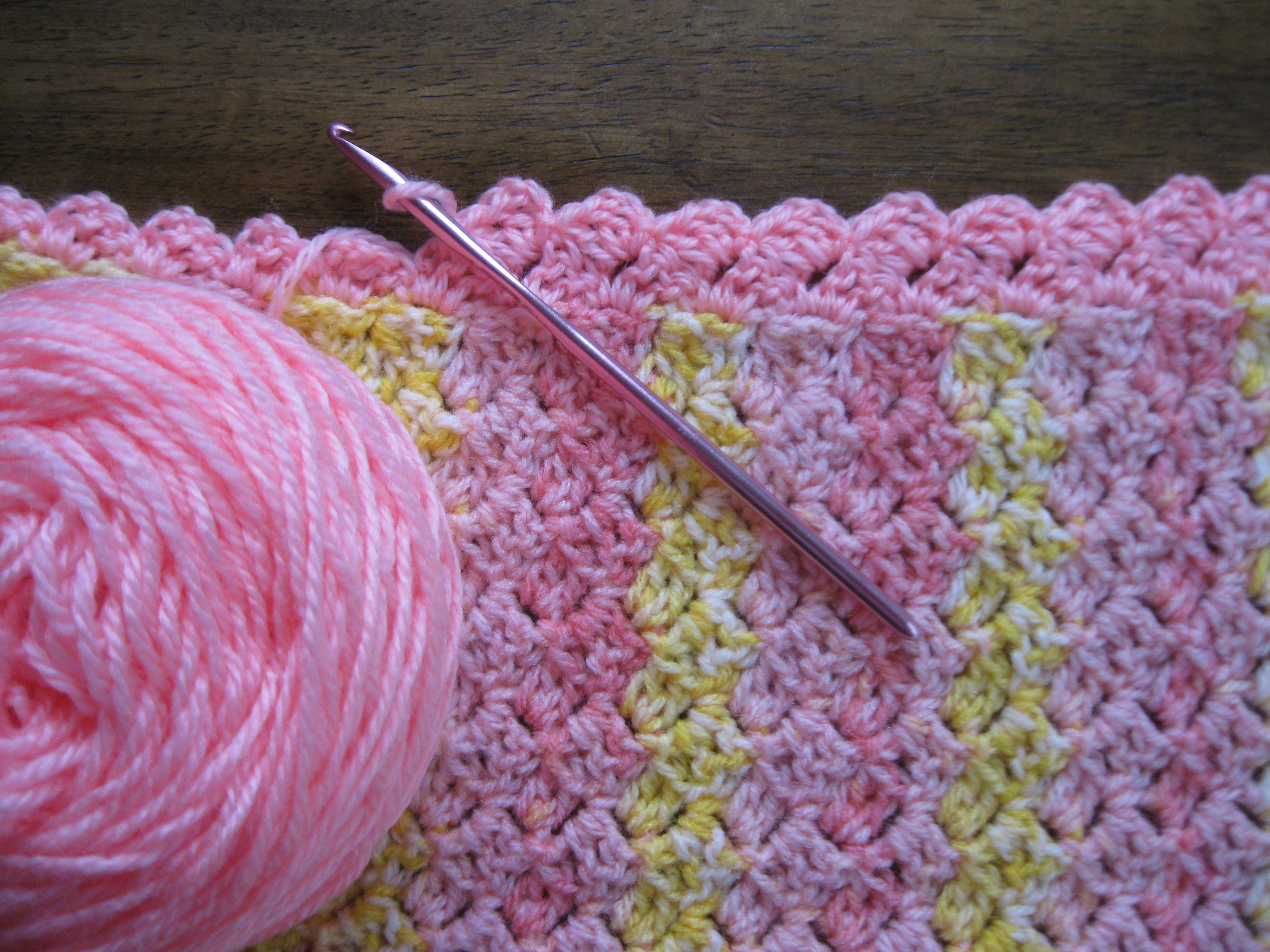 Day 76/365: Crocheted Baby Blankie of Pink and Yellow Shells