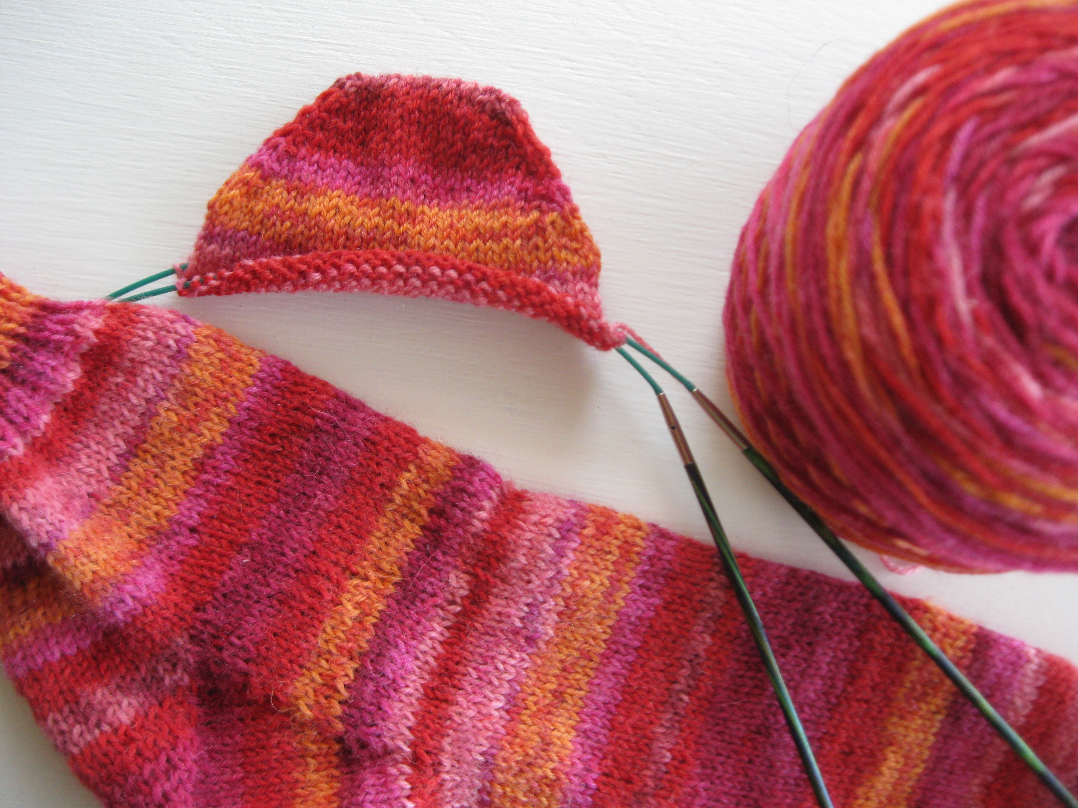Now that it’s July (halfway through the year!) and The Pumpkin Socks are done, I wanted to go back to my unfinished projects. So this week’s plan is to complete the second Red Hots sock.