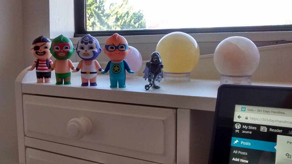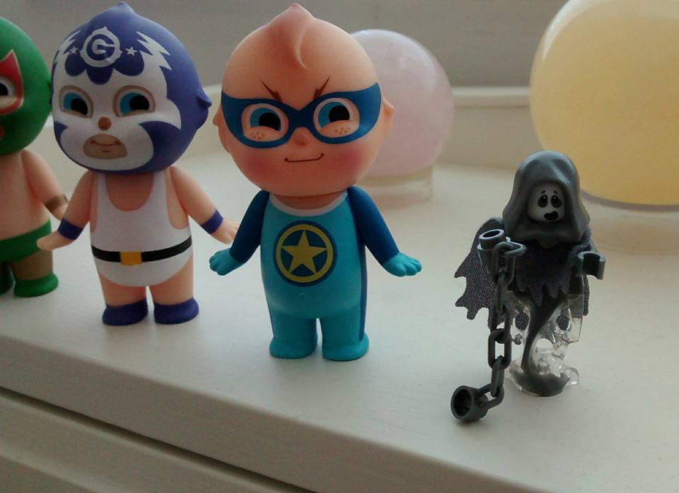 Imagine that you are at your desk, trying to write a blog post on the laptop. As you sit there typing, you start to get this weird feeling that something is not quite right. Like maybe something is looking at you. You glance up at the usual display of cute Japanese toys arrayed on the hutch– and you make eye contact with a creepy little grim reaper that seems to have materialized out of nowhere. Startled, you nearly jump out of your skin. You try to slow your heart down by taking some deep breaths, and in the process of recovering from the fright, you remember, Oh, that’s right. Your older brother was just here for a visit and, typical guy, this is his idea of a nice little surprise.