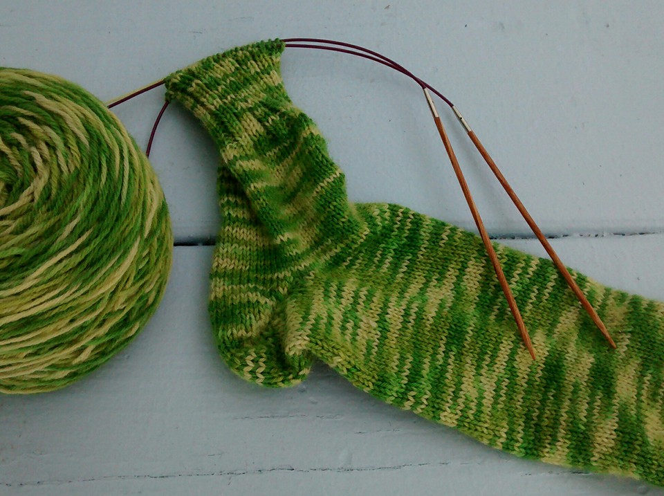 Day 266/365: Green Print Sock #1, Almost Finished