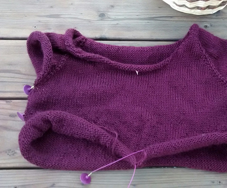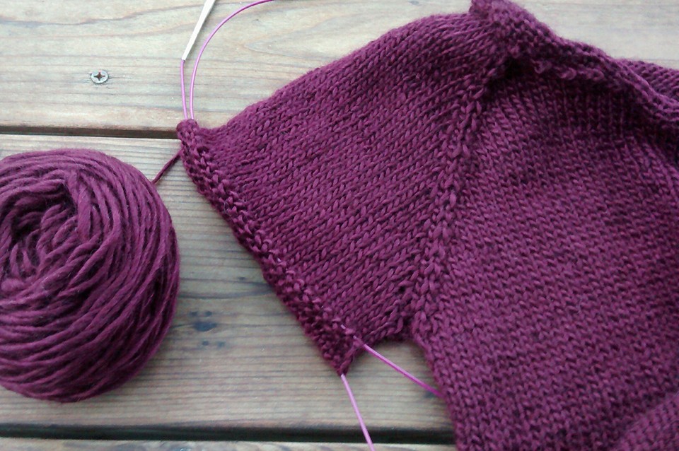 A big advantage of knitting a sweater from the top down is that you can try it on as you knit.