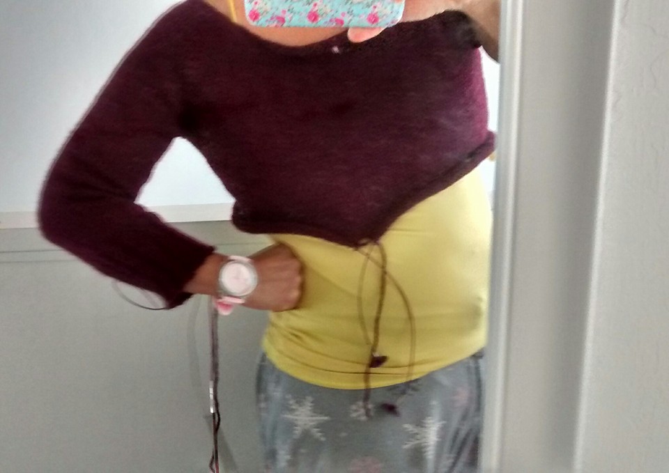 In which I take a selfie in my pajamas. And that weird bump on my belly is the drawstring cord of the pants.