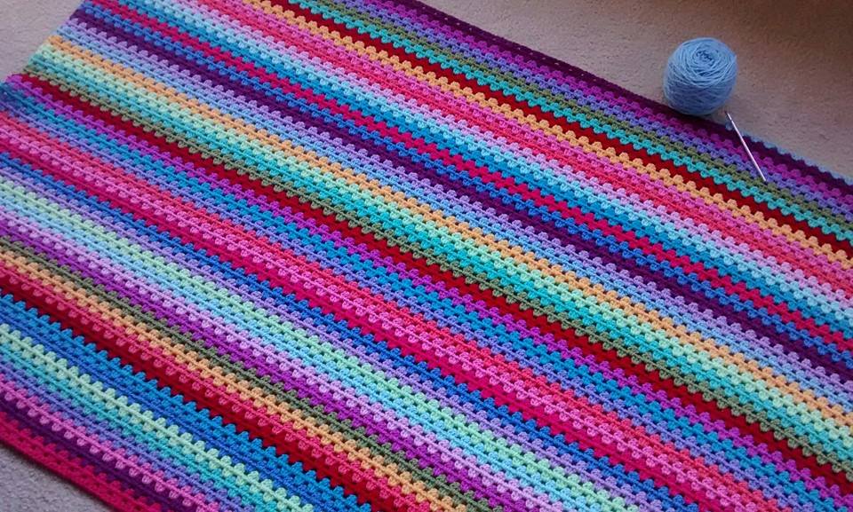 I’m obsessed with crocheted blankets right now. Shortly after I finished the Coast Ripples afghan, I started the Attic 24 Granny Stripe blanket. For this particular project, I like having a predetermined sequence of colors to follow. I enjoy not having to think at all about which color goes well with what, and it’s fun to see the big picture unfold in a paint-by-numbers sort of way.