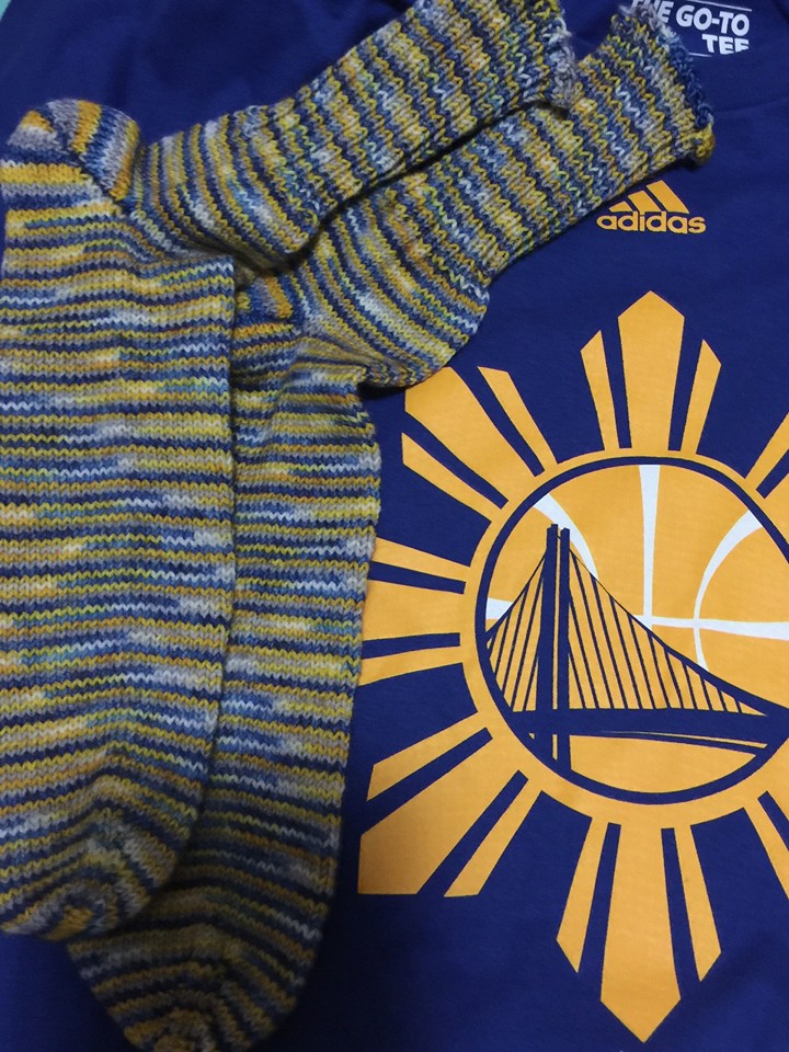 I started knitting socks again a couple weeks ago, and thought I’d share this story. Friday night I pulled these old socks out of the washing machine and noticed one had a snag in the cuff and had started to unravel. I thought, NBD, I’ll just frog a couple rows and knit it back up. Turned out that I originally knit that sock from the cuff down, meaning I had to unravel the WHOLE sock and start over. I wasn’t going to throw it out. So I unraveled the entire sock and knit it into a new one, but from the toe up this time. I put in a short row heel (the fish lips kiss heel pattern). Sean asked me if I planned to re-do the other sock and I think probably not. It’s kind of neat to see the difference between my sock knitting in 2004 (cuff down, flap heel, using DPNs) vs. the present (toe up, short row heel, using one long needle with Magic Loop method). The re-done sock (on the right) is looking a little crunchy because I didn’t bother to wash and straighten the frogged yarn before I started knitting.