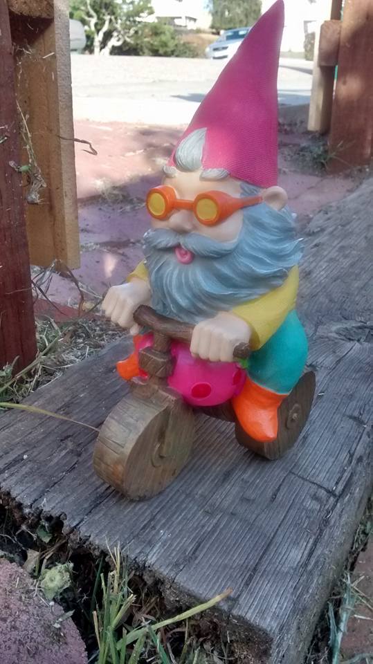 Sean had to stop at Miner’s Ace Hardware to purchase a few items, so I tagged along and browsed through the gardening section. That’s where I saw The Gnomes. I wanted to buy all of them, but they were kind of pricey, so I only allowed myself to pick two. I figured I could always go back and get the others after payday. When Sean and I got up to the cash register, I set them down on the conveyor belt and the cashier looked at them fondly as if they were old friends. She even patted one on the shoulder.