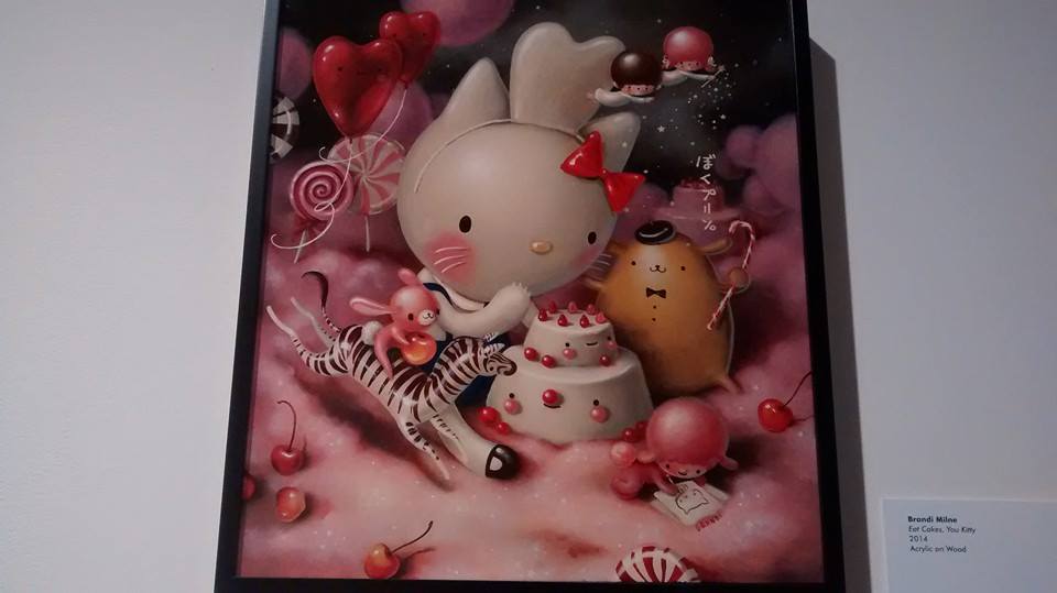 After the collections, we turned a corner and walked into a gallery displaying various artists’ contributions of Hello Kitty-inspired pieces. We were allowed to take photographs as long as we didn’t use any flash. You can bet I took a ton of photos to share, since not everyone would have the opportunity to see the exhibition in person.