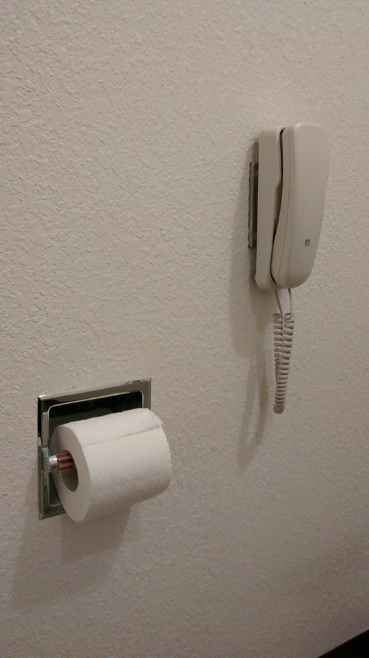 Speaking of entertainment, I thought this was amusing: Our hotel room is old school fancy. There is a gas fireplace and a cathedral ceiling with solid wood beams. There is also a telephone within easy reach from the toilet. You know, for those times when you’ve got to take care of business– while you’re taking care of business. Tee hee.