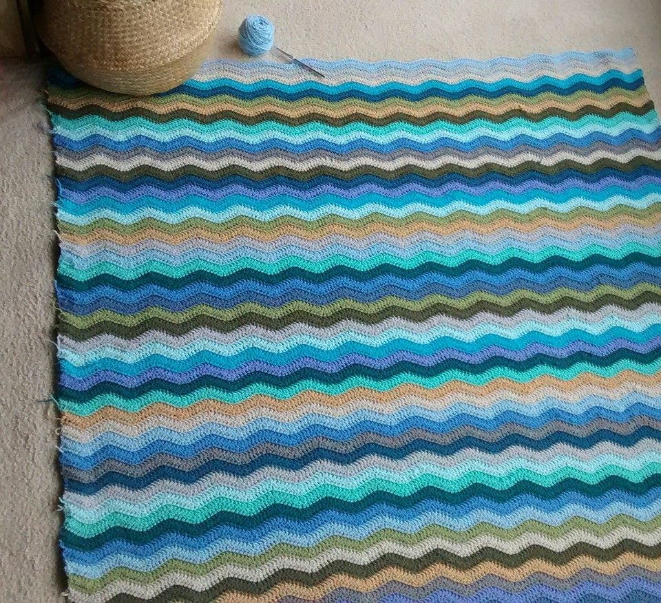 Throughout all this traveling and eating and donut-merrymaking, I didn’t get a whole lot done on my crocheted afghans. I brought along a sock to knit, but I might as well have left it home because I only managed to finish a few rows on it.