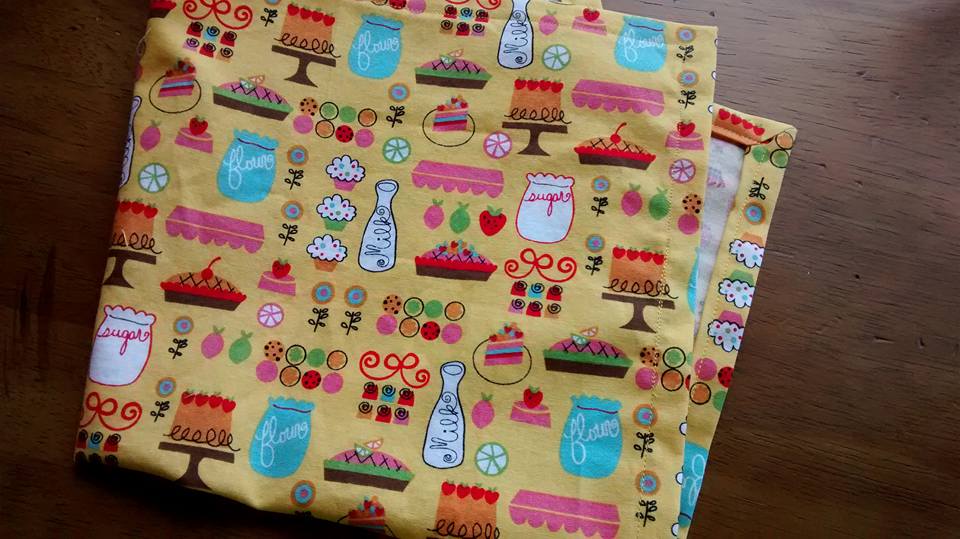 “Look, Sean!” I held up the square of fabric to show him the neatly hemmed edges and mitered corners. “Check it out.”