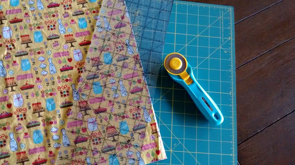 After washing, drying, and pressing the fabric, I used my rotary blade to cut squares.